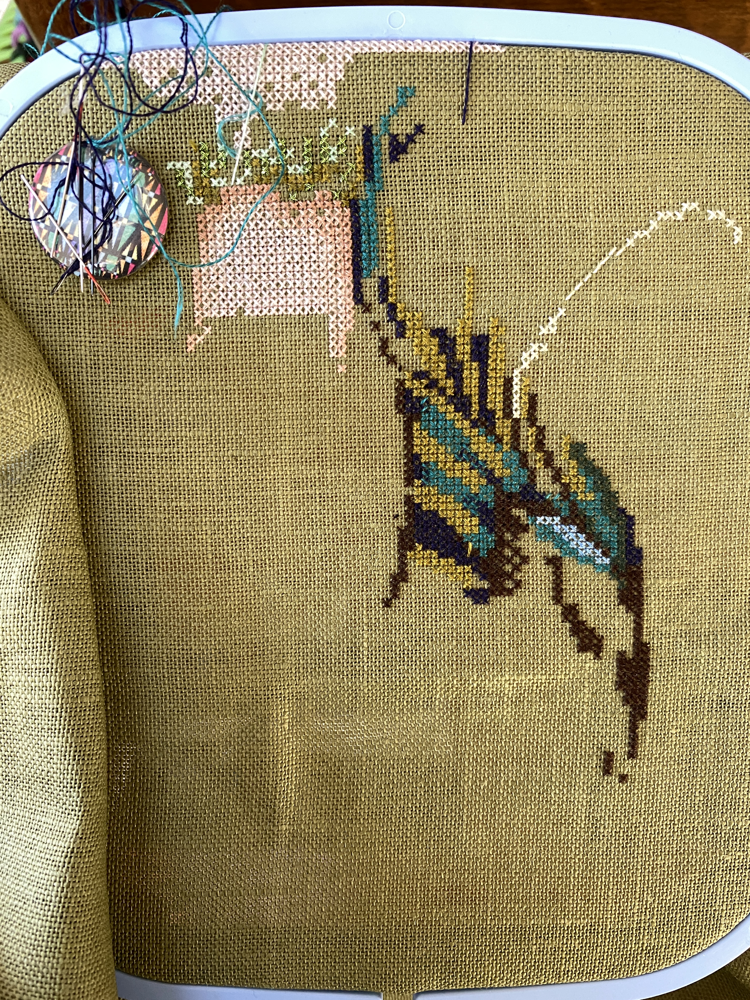 In cross stitch news, I am making progress on the mermaids tail. Lots of counting and color changes. I am getting the “rhythm” of it though, learning the color symbols and shading. This is stitching more like a whole cloth piece, which is a bit different from the motifs of Consider the Lilies. I am waiting until the end to do the bead work, as I am using a smaller hoop and I don’t want to be crushing the beads when I have to move it to another area. I have used a bit of the metallic threads, in the bra area, but I may just leave those to the end also. The colors of my project are the same as in the finished photo. My camera is seeing them not so pretty today.