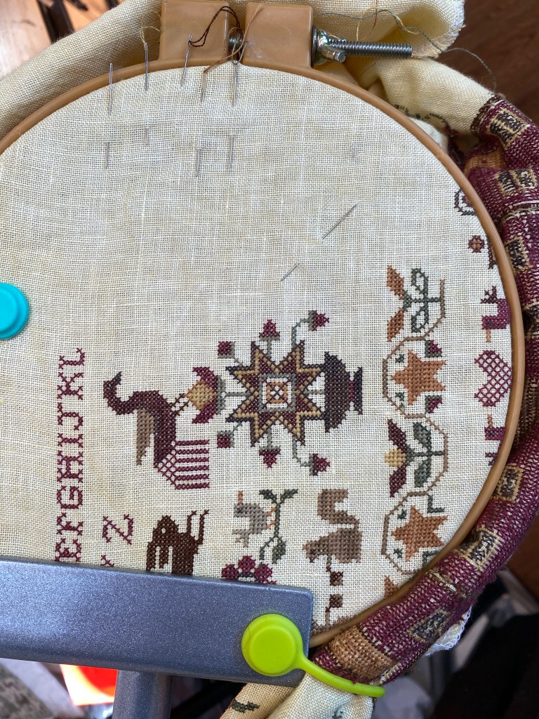 Steadily working on Heaven and Nature, I am sure I’ll have it finished by Christmas. I kitted up my next project, “Consider the Lillies” by Heartstring Samplery. I am stitching along with Jo, at Jo’s Country Junction this year. She and her daughter started this piece about a year ago, and then she got distracted by a few other projects. The piece is large, and has lots of different motifs and flowers. If you break it down to pages to complete, it’s not so overwhelming, that is how she (we) is planning on completing it. Jo normally has a bunch of cross stitch projects going on simultaneously. I tend to be a one project at a time stitcher, (at least with cross stitch) but I think I may just start this one before I finish H&N.