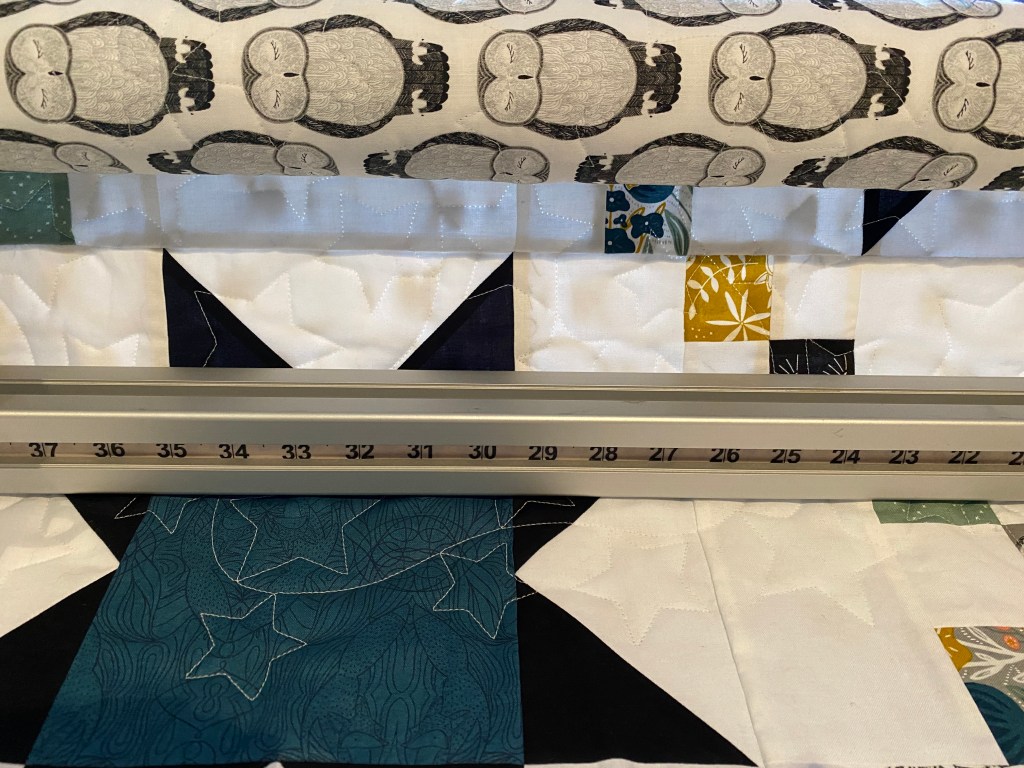 Nine days later, I’m getting started on that list again. I got two rows of quilting done on the last Nocturnal quilt. I chose the stars pattern because it stitches out fairly quickly, no back tracking.