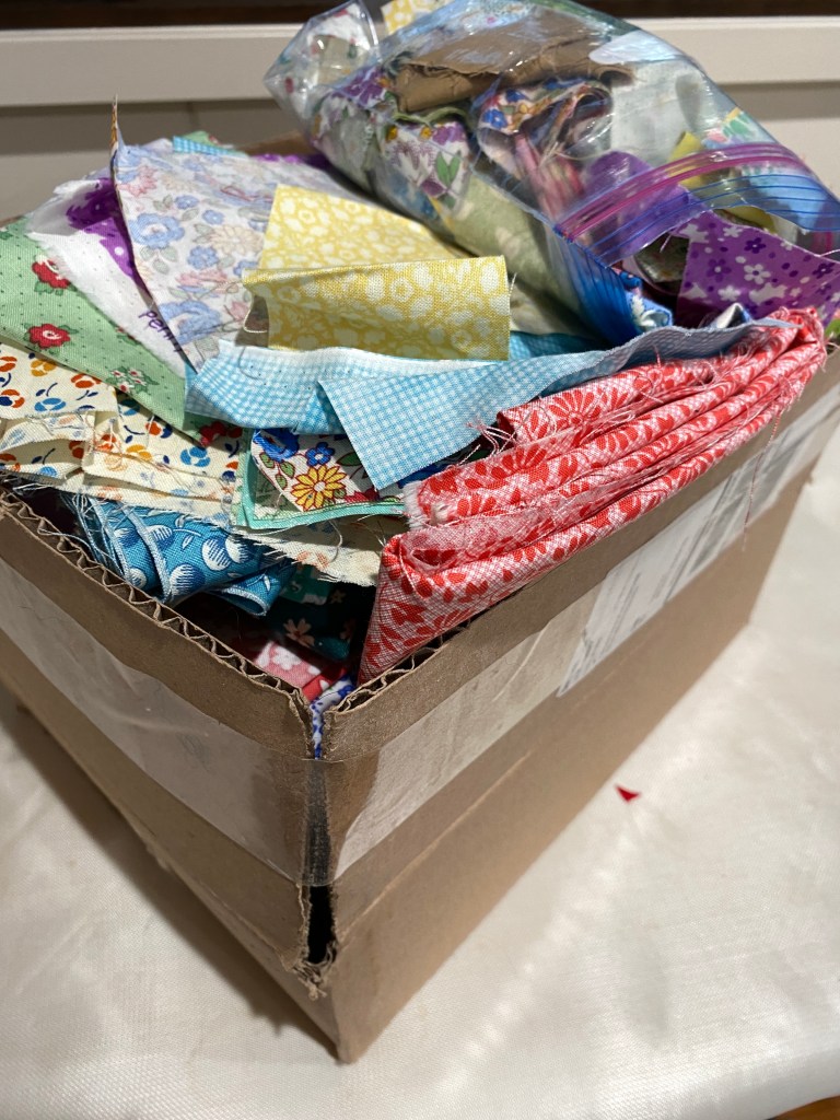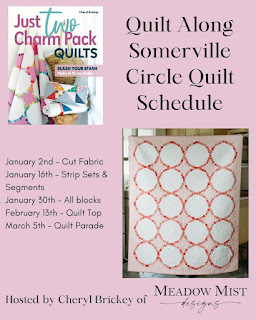 I am contemplating starting a quilt with Cheryl of Meadow Mist Designs , she is doing a QAL with her book “Just two Charm Pack Quilts Book”. You have to choose one of the sixteen from the book to make. I have the PDF book and I got it to do the quilt called Sommerville Circle. The QAL is 1/2/24 through 3/5/24, with cutting this week. I need to look and see what’s in my stash to make this work. It calls for 2 – 3/8s yards background (white) and 1- 7/8 yards background (pink) and of course two charm packs. I could very well just use scraps for the charms, I know I have white yardage. I pulled out my box of 30’s retro prints for the Simple Days, they would be nice as the scraps/charms maybe with a light green background. I doubt I will do all the postings and -graming that one is supposed to do with this QAL. It will give me an agenda/plan though, and I am good at sticking to them.
