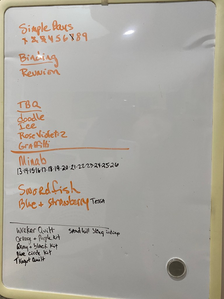 Once these two are finished, I will start on another project that has been languishing, either the Tessa quilt, or the Swordfish one. Easy or intense, the Swordfish pattern is all sorted, but not cut, Judy Niemeyer quilts are an “all in” type of project. The kind that takes over your work area in an organized way. The Tessa quilt is just large pieces, but still needs to be laid out for piecing and stripe continuity.