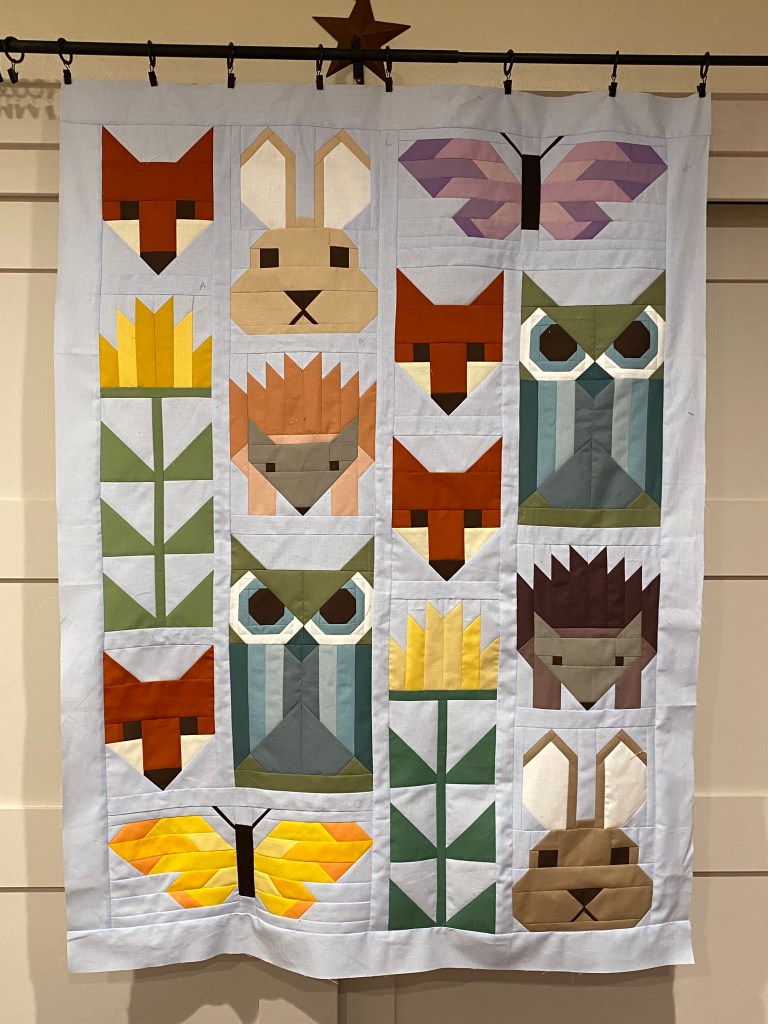 I finished up the Fancy Forest quilt, this is the third one I have made, although the first one was a queen size one, which is four baby size ones put together. I had a bit of fun choosing the colors for this one, I stuck to mostly “lifelike” ones, but I really like the teal and green owls. I was able to use all scraps for this top, and only purchased the blue background. I haven’t picked a backing yet, but may go with a solid, this is a good size quilt to use up some franken-batting too.