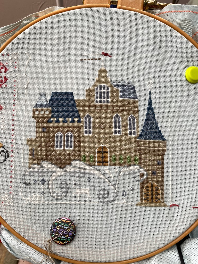 The Castle is nearing completion, I just need to finish the roof and the white border flourishes. Then it is on to the Greenhouse. The Cottage is after that, all I have is the thread list, hoping the pattern will be released soon. I like the color combo for the flosses, I imagine a thatched roof, English type cottage with a garden in front, we’ll see. I have been keeping up with the Heart a Day SAL from Meg Hawkey. Most of them are fairly easy, and we are getting to the end. Once I finish this, I will start a new Simple days block, since I am in the hand stitching mode. It would be good to get another one finished for February, since this month is slipping by. Also I need to check something off the white board list.