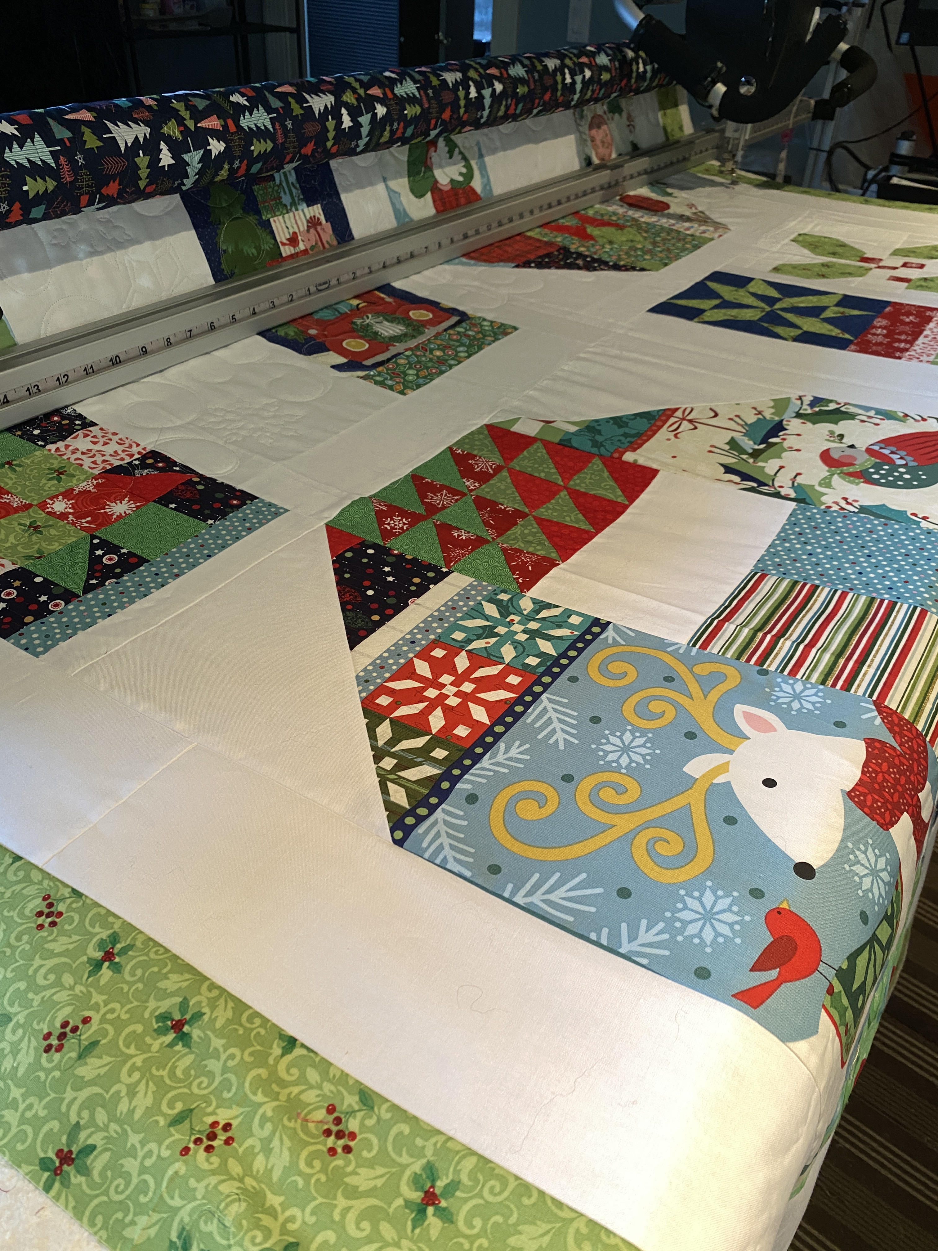 I did finally finish the Strawberry Picnic quilt this week, needs binding though. I put the Noel quilt on next, and I’m about ½ way through it. Once the Split Nine patch quilt is done, it’ll free up my sewing table and I can get the bindings done on those two three, (don’t forget Morning Glory). I also go the Spot-on quilt top together, it will join the TBQ pile too. Next up is the Moondance Revival, as the backing for it was delivered.