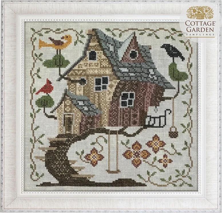 The Hobbit house is slowly being built, I didn’t stitch last night. I did get the first window done, and I think I have about ten more days until the Tree house (#6) pattern arrives. The picture is posted on the web site, Cottage Garden Samplings. It’s pretty cute, I like the birds, especially the cardinal. I have all the called for flosses for it too.