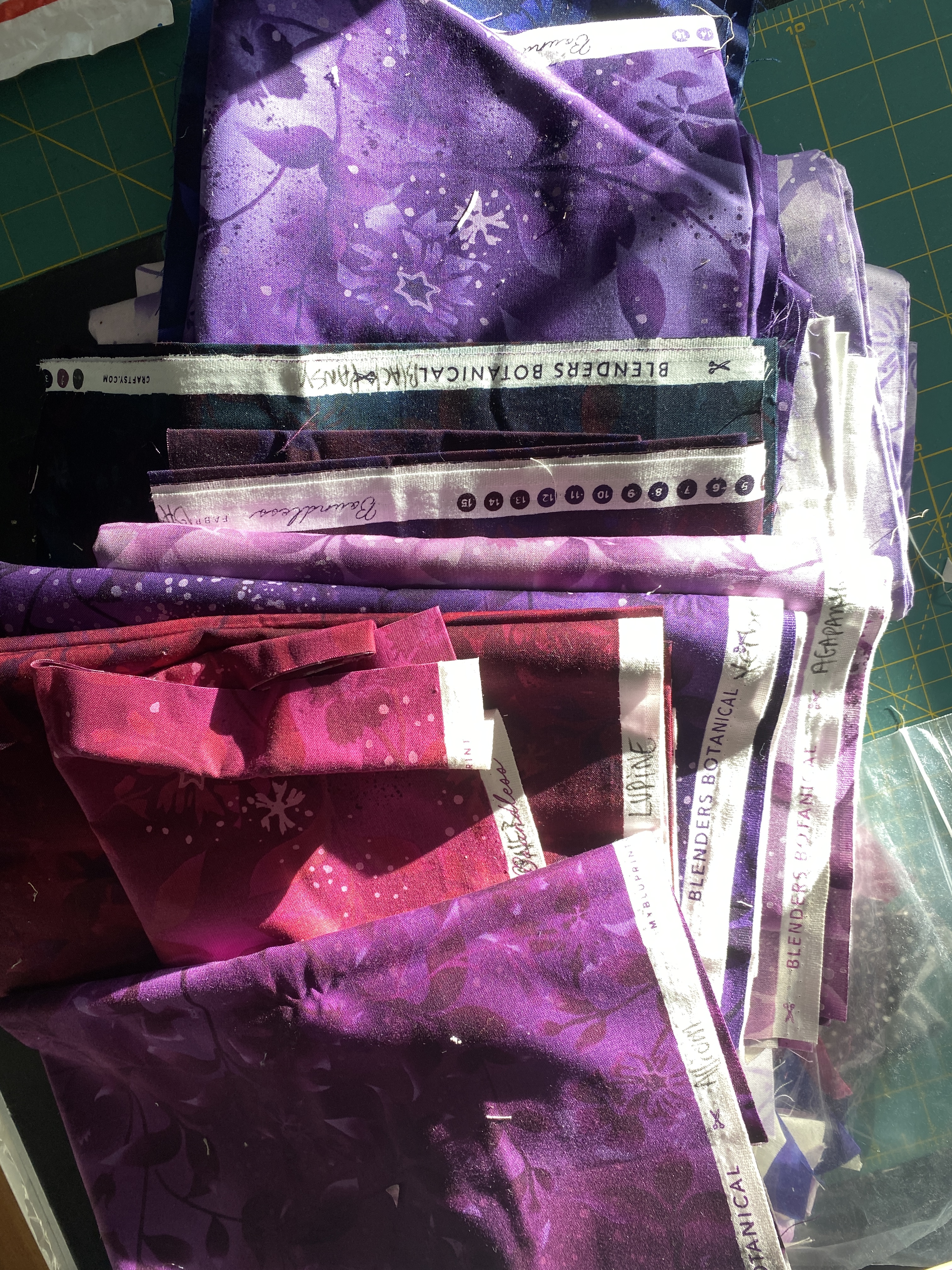 Just to keep myself from starting something new, I pulled out an UFO. This was a kit I got from Craftsy, called Punch Bowl, and I wanted to use the Creative Grids ruler for it. However, I think I made the “A” blocks and then made one “B” block to find that they weren’t the same size. Meaning that they didn’t fit together like the pattern. I sewed all the A’s together, but didn’t like how it looked and put it all in a basket for time out. Time in started yesterday, I pulled it all out and tried to make sense of it all (Note To Self “TAKE NOTES”). I took all the block A’s apart and decided to make as many block B’s as I could. My new block B is the same size as the A, and the layout is a bit different than the original pattern. I think I have enough fabric to make 36 blocks total. The original pattern was for a 90 inch square quilt, mine will be 60 inches square.