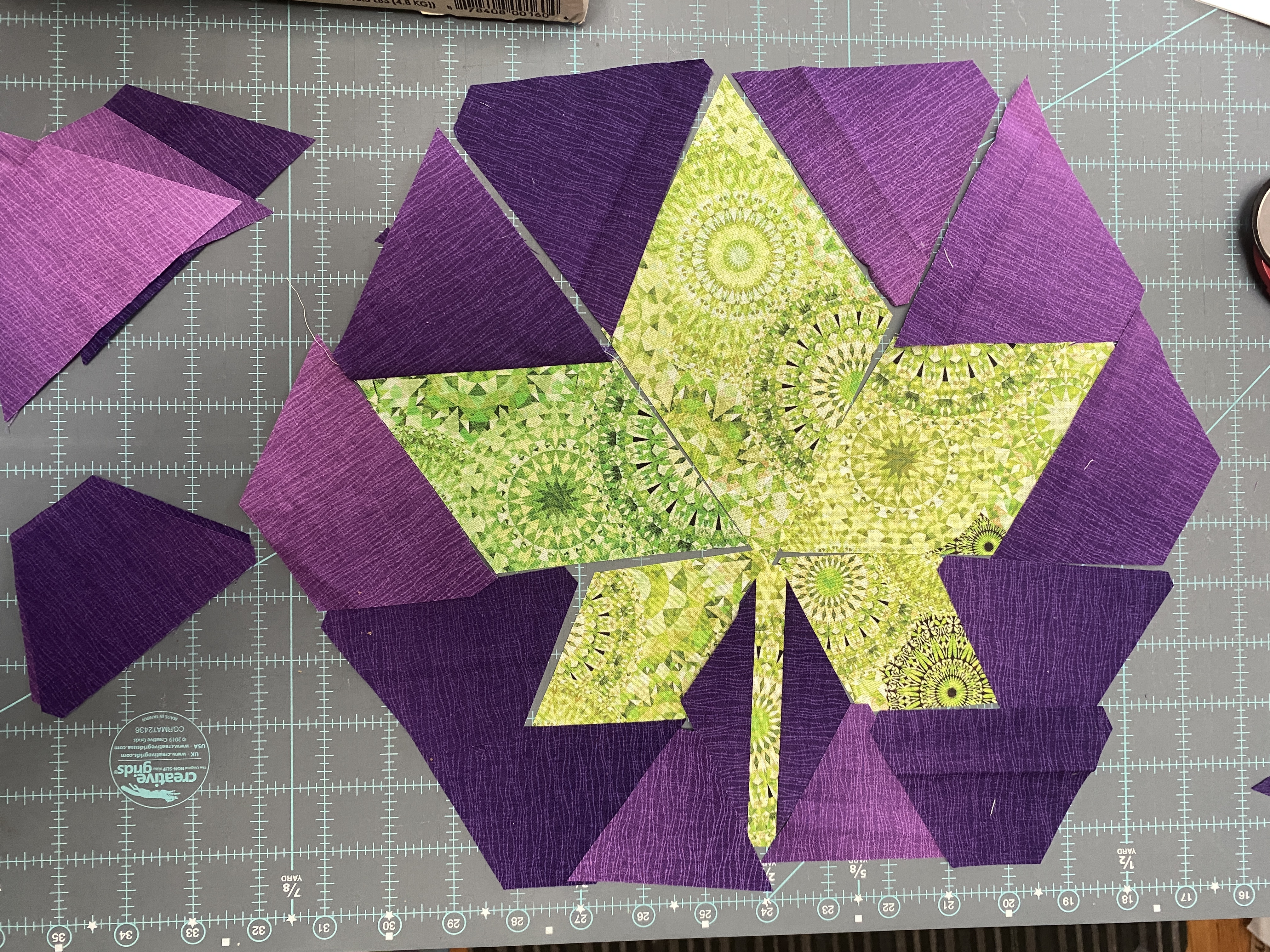 Diamonds aren’t really my bestie lately. I am trying to cut out all the pieces for the Fall foliage quilt with a Creative grids ruler. What is slowing me down is that it is a mini size one and not the regular size one. That and I am too stubborn to buy the bigger one. My ruler only cuts up to a 3 ½ inch diamond, and I need 4 ½ inch ones for this pattern. I do have a different ruler that measures up to 4 inches, and one that does 6 inches, but no 4 ½. I am wrestling with myself to go see how much Amazon would charge to have it here tomorrow – $23.00. Is it worth the time and frustration I will save? Yeah. As I was perusing the Amazon Creative Grids collections, I realized I have the tiny diamond, not the mini diamond ruler which is called for in the pattern. Also there are lots of cheap knock-off acrylic rulers for sale out there. I will put the cutting on hold until I get the ruler.