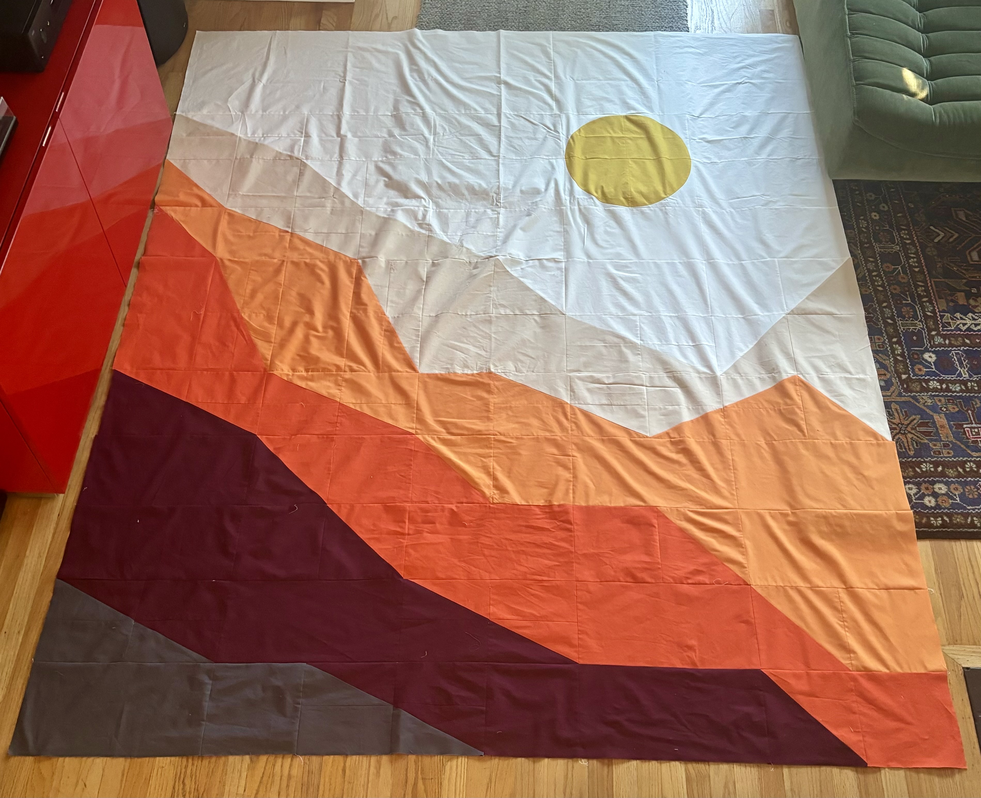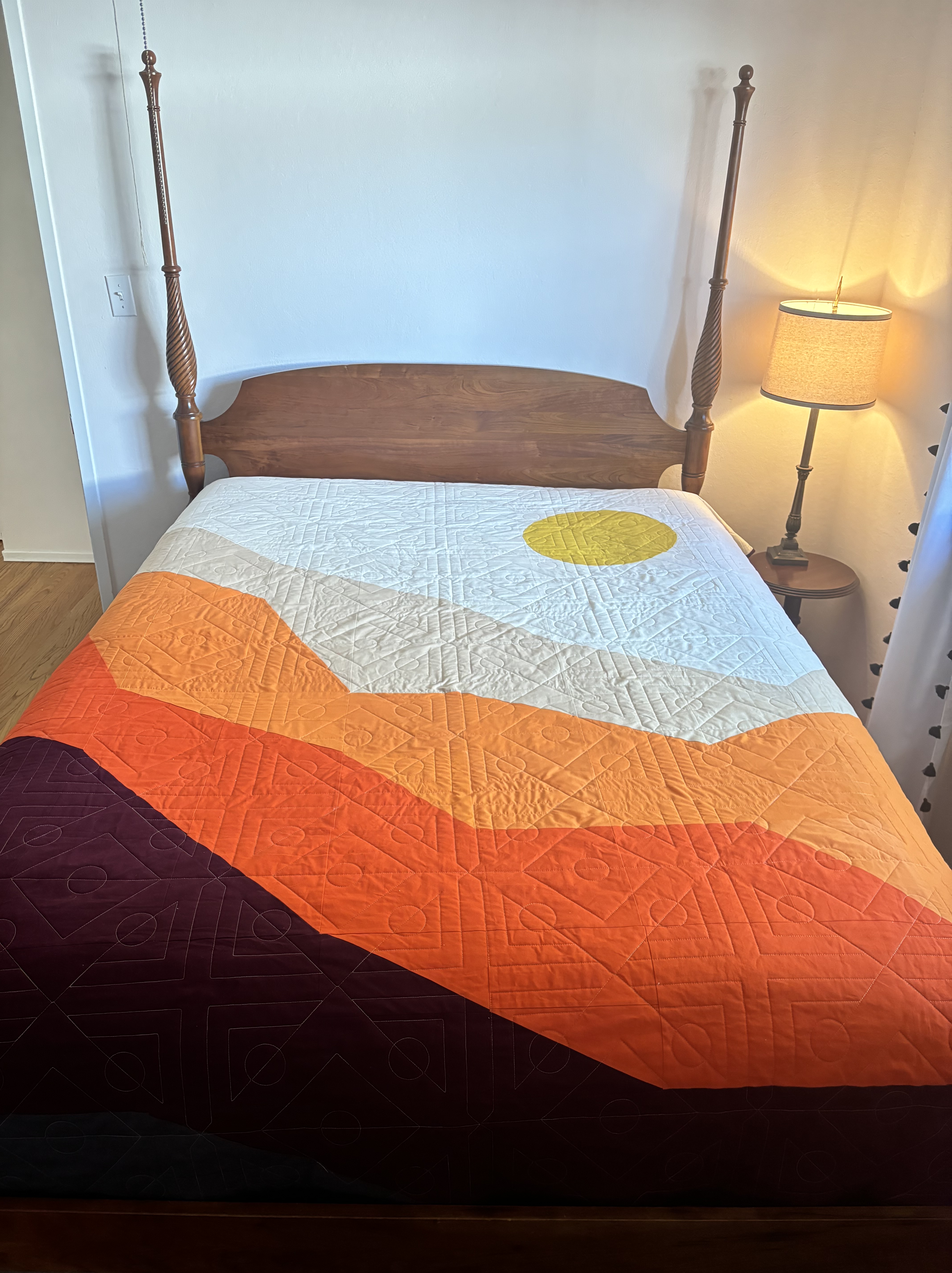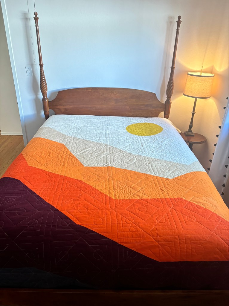 In quilt making news, I was able to quilt up the latest customer quilt. It was a quick project, I didn’t even take any photos. The maker is like 9 ½ months pregnant and trying to finish it up for a wedding present. It was a modern landscape top, very pretty, with a simple diamond and circle panto called Diamond fields. She is going to bind it and send me a picture when she’s finished. This is what it looked like before quilting, and after.