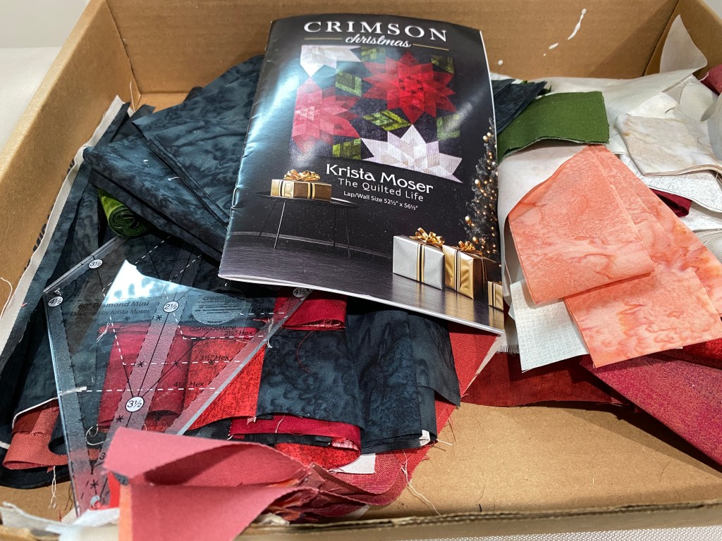 My work on the Krista Moser Quilt-a-long has stalled, I got everything cut and many of the poinsettia petals done. However, I need the big diamond shaper ruler. I have the small and the mini, but my 60 degree triangle ruler isn’t big enough for the cuts I need to make. I had a coupon for Keepsake Quilting, so I applied it to the purchase of yet another Creative Grids ruler. It looks like it’s shipped on the 21st, so probably next week. I really want to finish this quilt as a gift, going to cut it close.