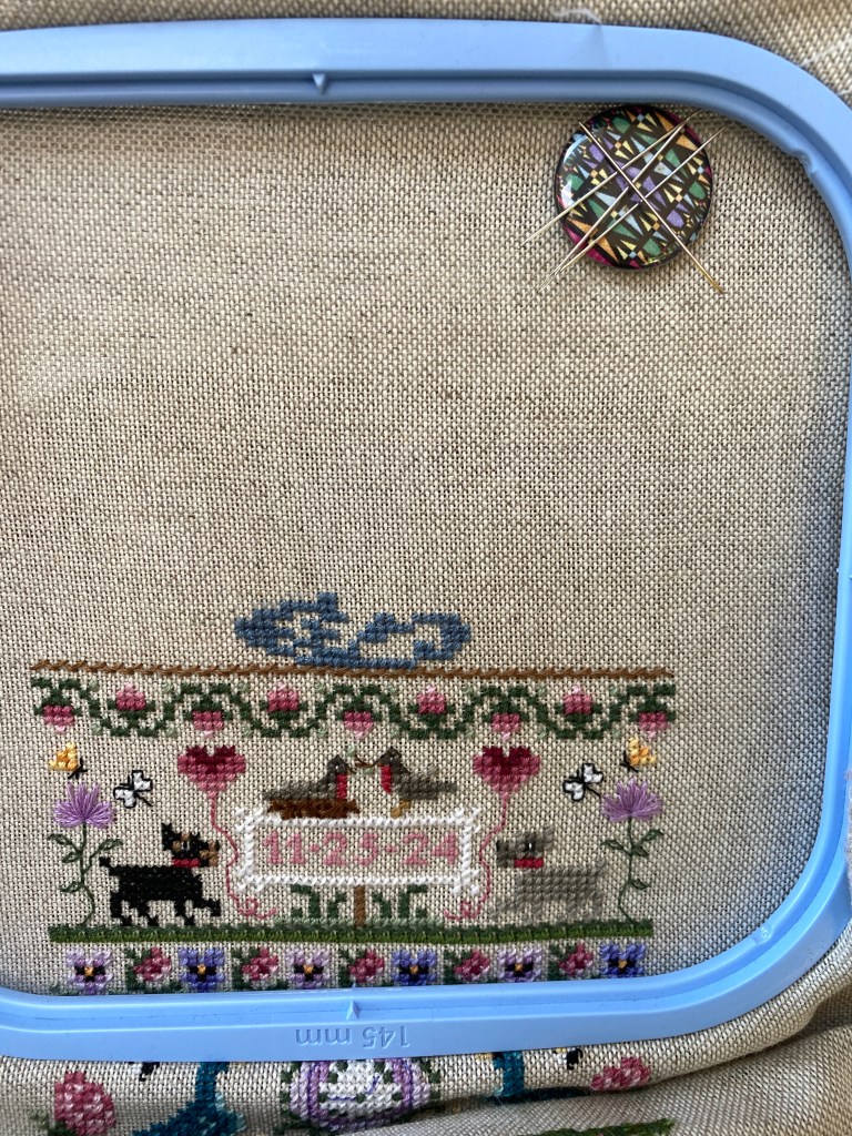 I have been doing other things too, I got a lot more sewn on the baby sampler, so many thread changes. I sometimes feel like I spend more time burying threads than making stitches. I am happy that this is a smaller piece though. I think I am about half way through, I will need to graph out the name, so it is centered. I winged it with the birth date, and got lucky. Nobody likes to frog ‘over one thread’ X’es.