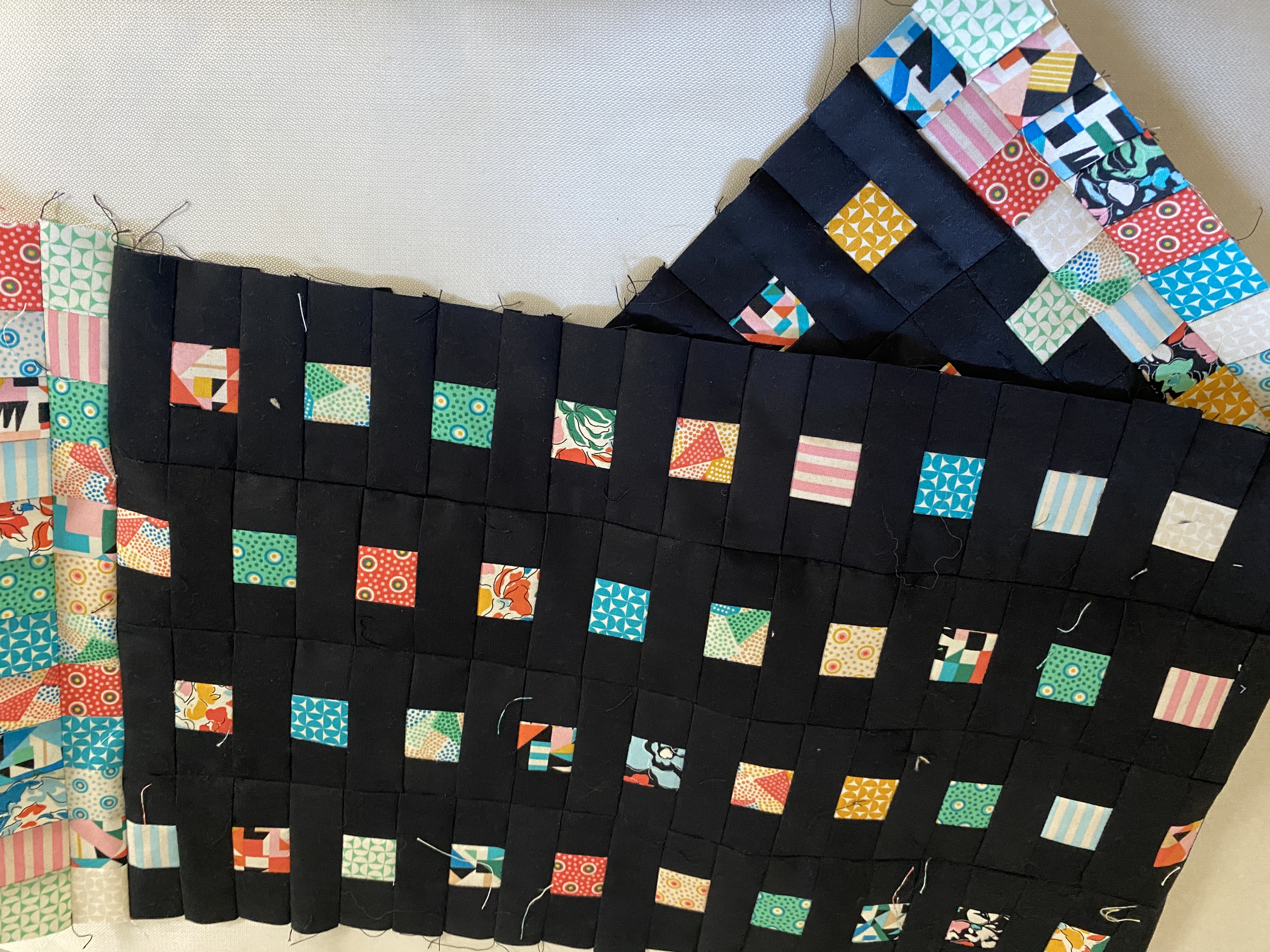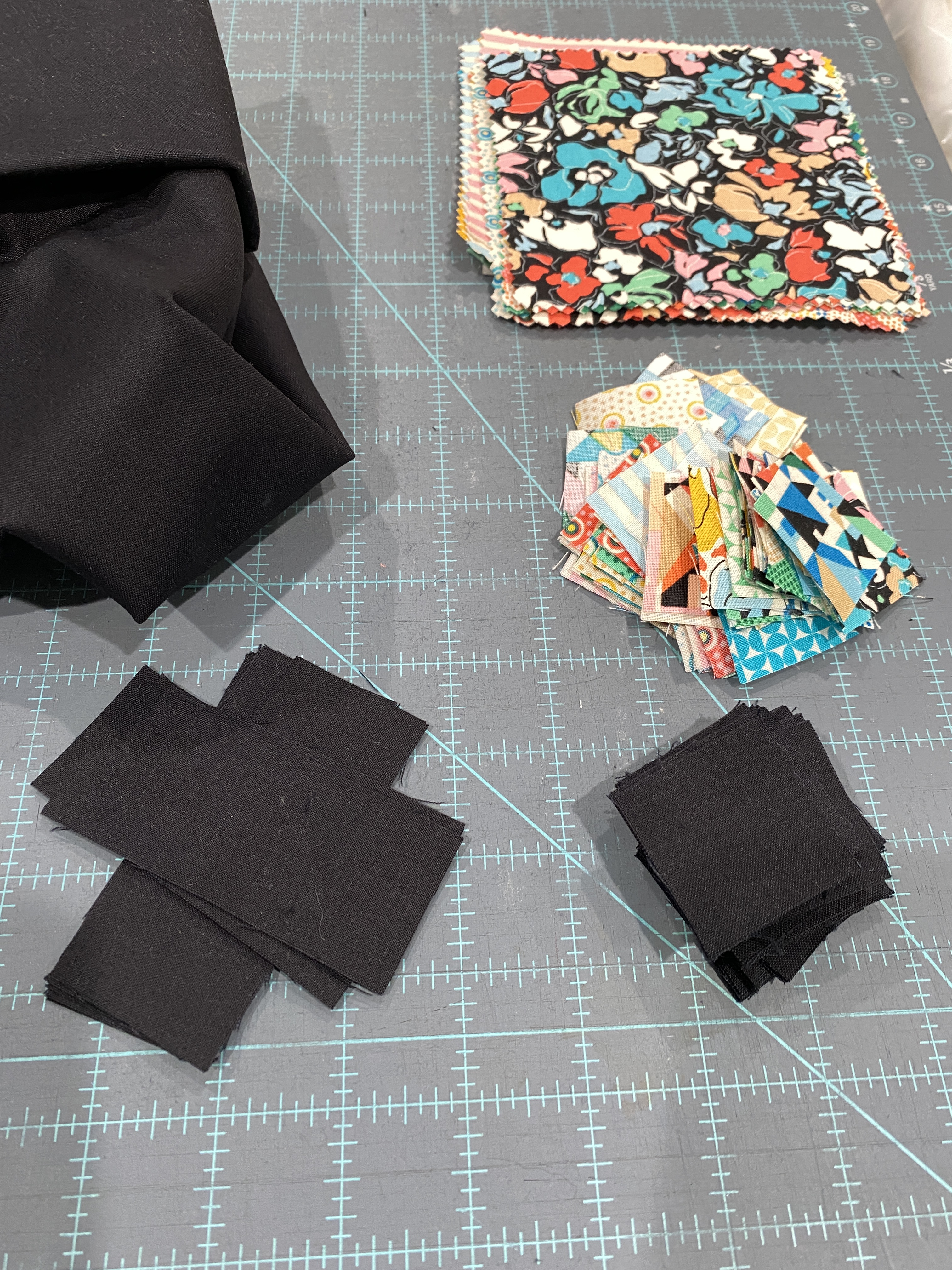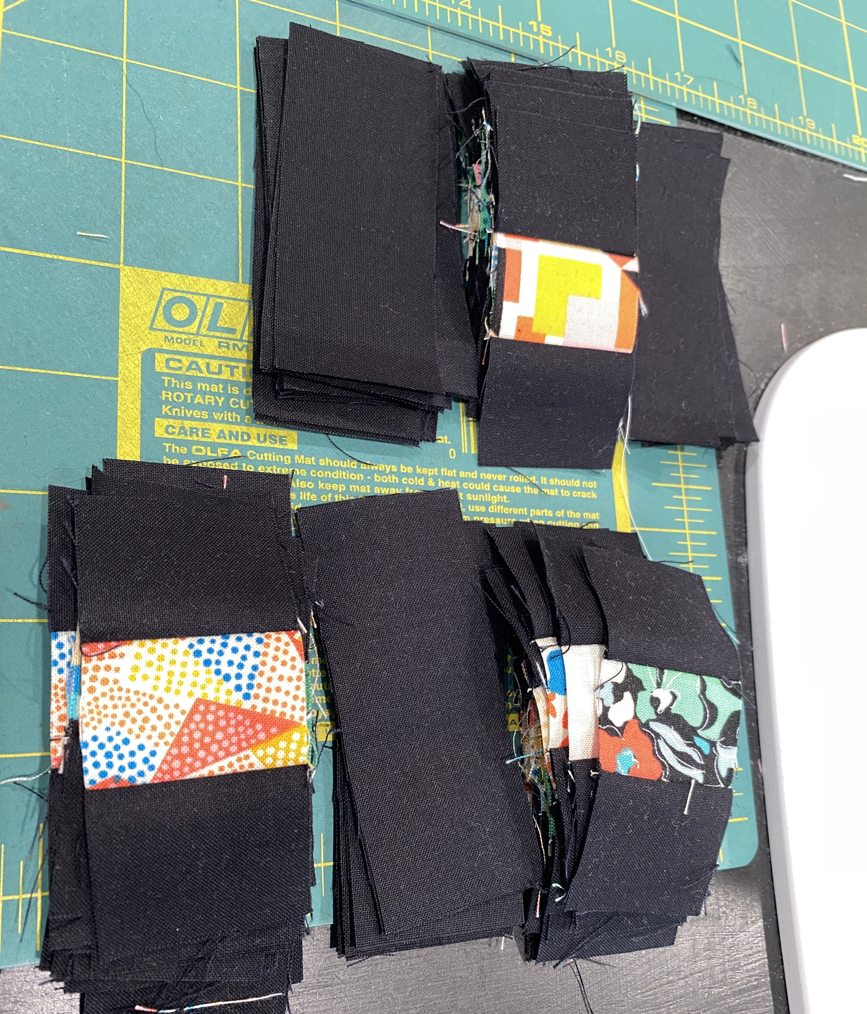 I am still waiting on the last few yards of fabric to get here so I can finish the last Halloween quilt for the shop. I thought I had a good substitute, but when I got all the fabrics together for “Spooks and Spells” I wasn’t liking the mix. I started a table runner last night, it was a kit from Connecting Threads, using the Art Haus collection from them. I originally thought it was 2 ½ inch squares, but after reading through (good habit) the instructions I “discovered” they were 1 ½ squares, finishing at 1 inch. I used my handy Accuquilt strip cutter and quickly cut a million or so squares and enough strips. I think I have enough to make another runner or two. I will have to add some more Amish black, or maybe a different color background. I think I needed something mindless simple after all those cut corner squares and rectangles of the last three tops.