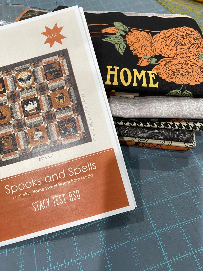 Blog titles are tough some days. I want to come up with the title first and then the talk-y part. Anyway, it seemed like this week was productive. I got three quilts done, two sent out and one for the Shop. I finished the Hocus Pocus top, and the backing for it. Got the customer’s Candy Corn quilt on the frame, just waiting on him to choose a panto. I am quite proud of my pattern matching on the back of this one. I had to sew two widths together and match the flowers. I used a little school glue to help and had success.