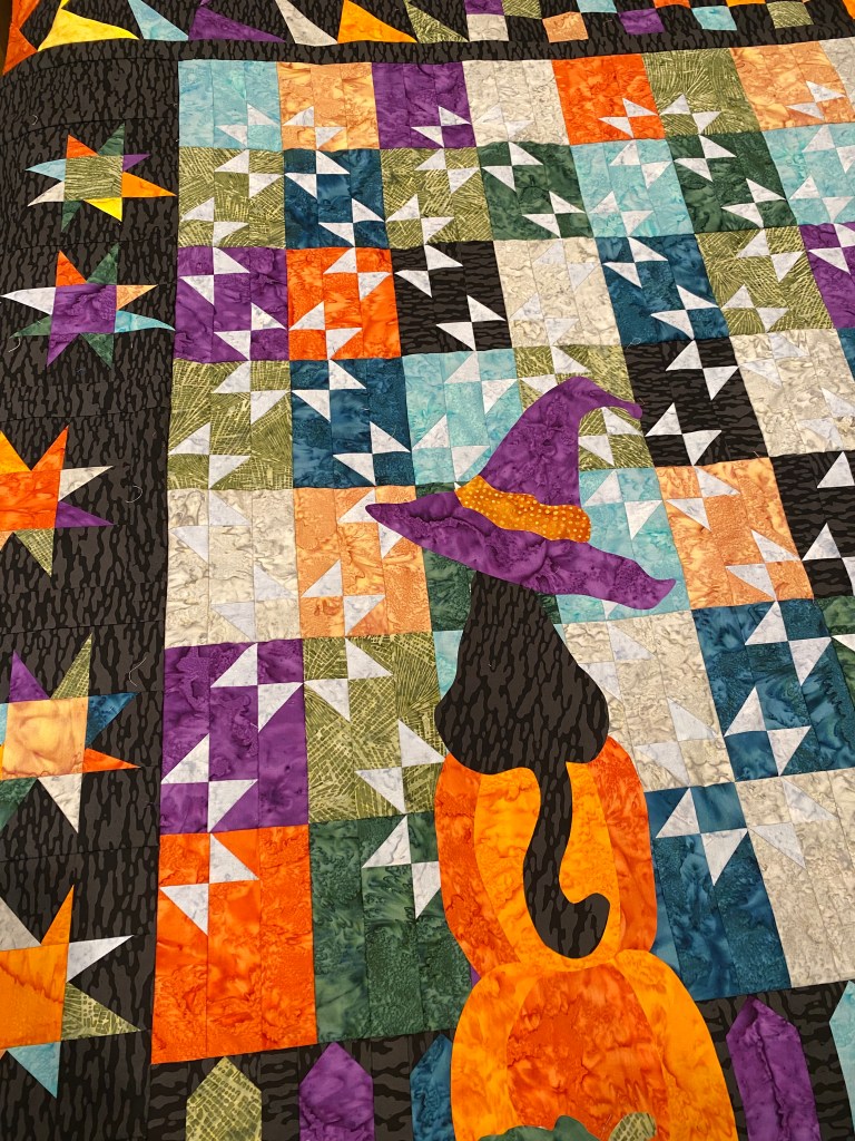 I started quilting the Candy Corn quilt, it’s going well. Although, I started with a black bobbin thread, after about three inches I stitching, I knew it wasn’t going to work with the stark white background. I switched to white, as the black was showing up as dots on the front. I really didn’t want to go through explaining that “issue” to another client. I should note that last client quilt was accepted, but I didn’t charge them for the quilting. The black bobbin thread will probably sink down once this quilt is washed and dried, but I won’t take a chance this time.